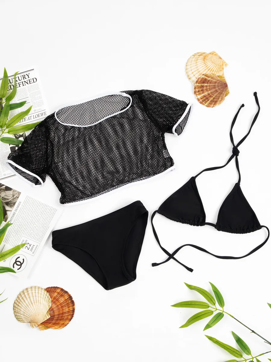 Представляем раздельный купальник для девочки, который идеально подходит для летнего отдыха на пляже или в бассейне. Этот стильный плавательный костюм обеспечит комфорт и уверенность во время купания. Он выполнен в черном цвете, что придает ему элегантный вид, а также легко комбинируется с другими элементами пляжного гардероба.