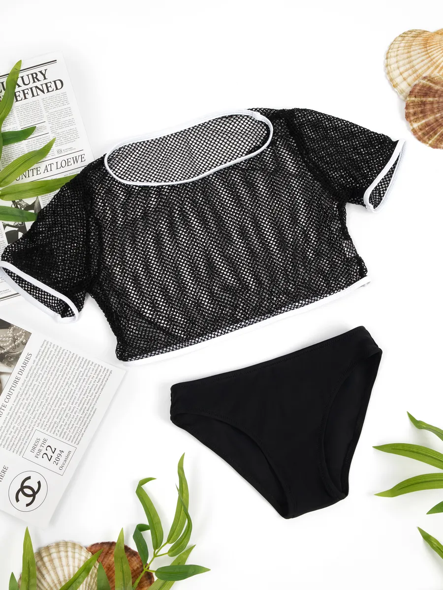купальник детский с накидкой топ в сетку,