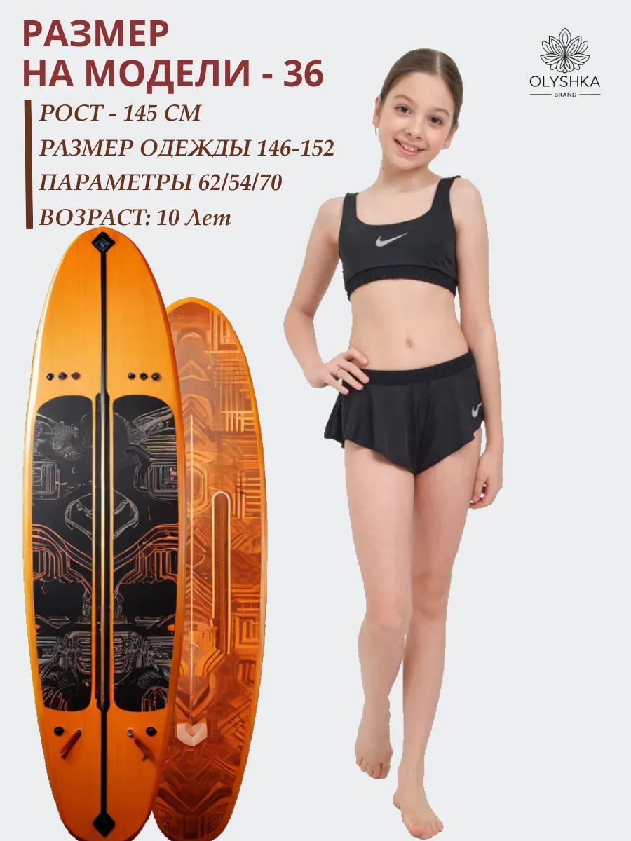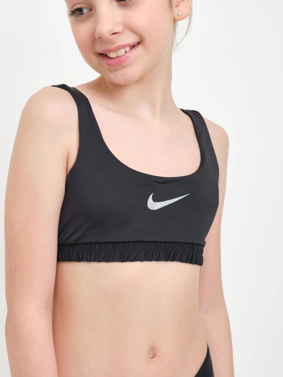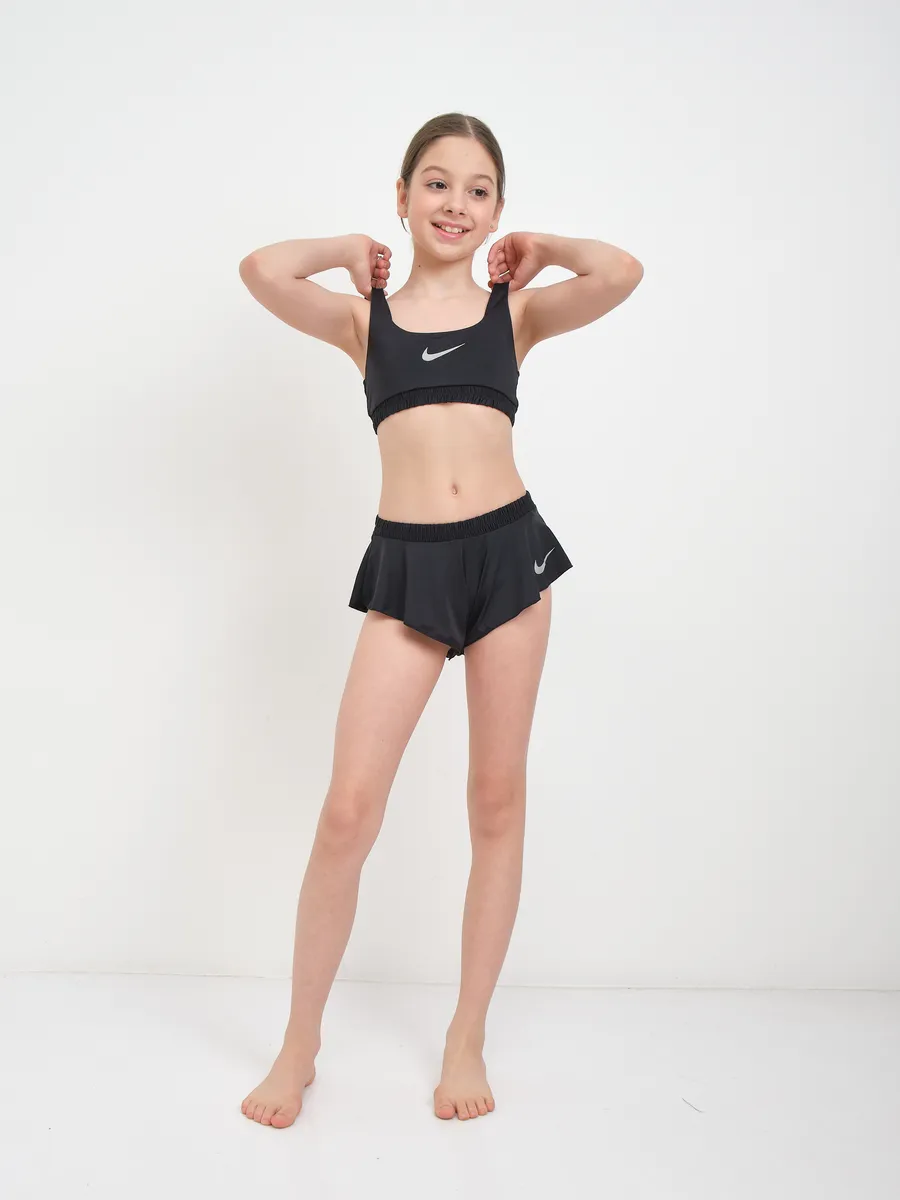 Представляем универсальный раздельный купальный костюм для активного отдыха, который станет идеальным выбором для девочек и подростка. Этот спортивный комплект в элегантном черном цвете с узнаваемым логотипом Nike обеспечивает не только стильный вид, но и максимальный комфорт.