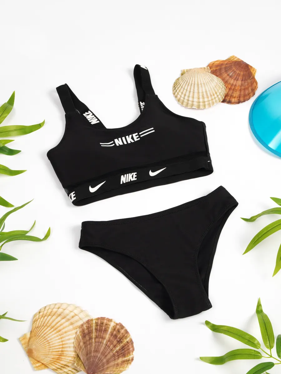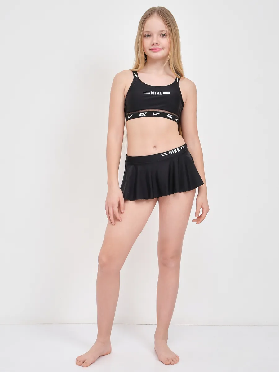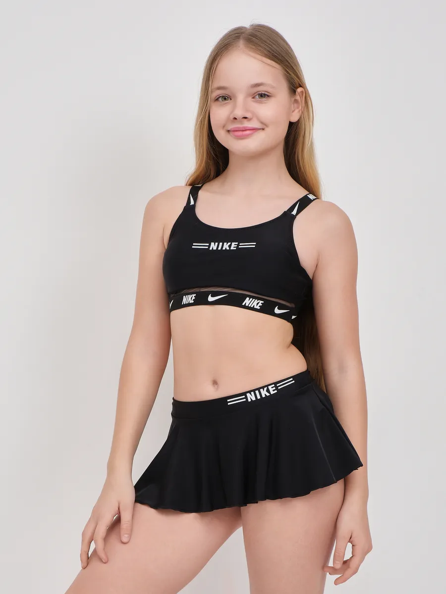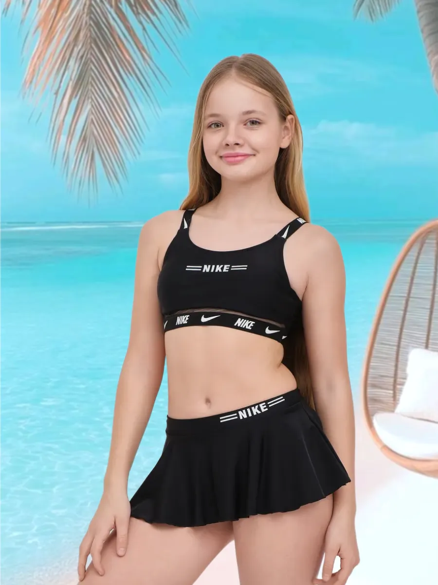 Представляем идеальный раздельный спортивный купальник, разработанный для девочек и подростка, ценящих комфорт и стиль. Этот детский купальный костюм выполнен в классическом черном цвете и украшен узнаваемым логотипом Nike, что делает его универсальным для любого времени года. Удобный топ без жестких чашечек обеспечивает полную свободу движений, а вместо привычных трусов в комплект входят оригинальные шорты. Их многослойный дизайн с легким воланом дополнен внутренними шортиками, создавая эффект юбки и предлагая решение "3 в 1". Идеальный для активного отдыха, занятий плавания в бассейне или на пляже, этот комплект станет незаменимым для купания на море.