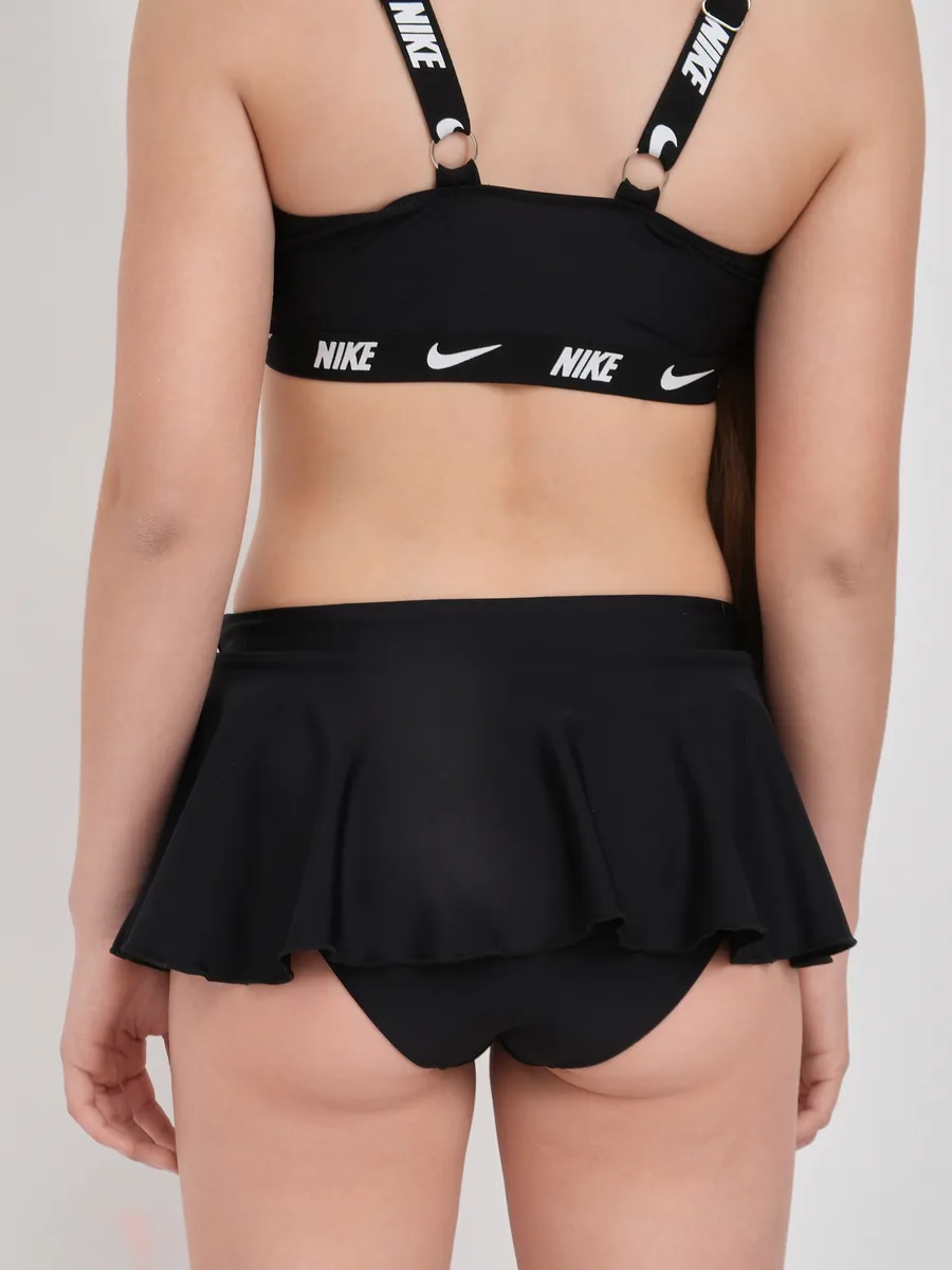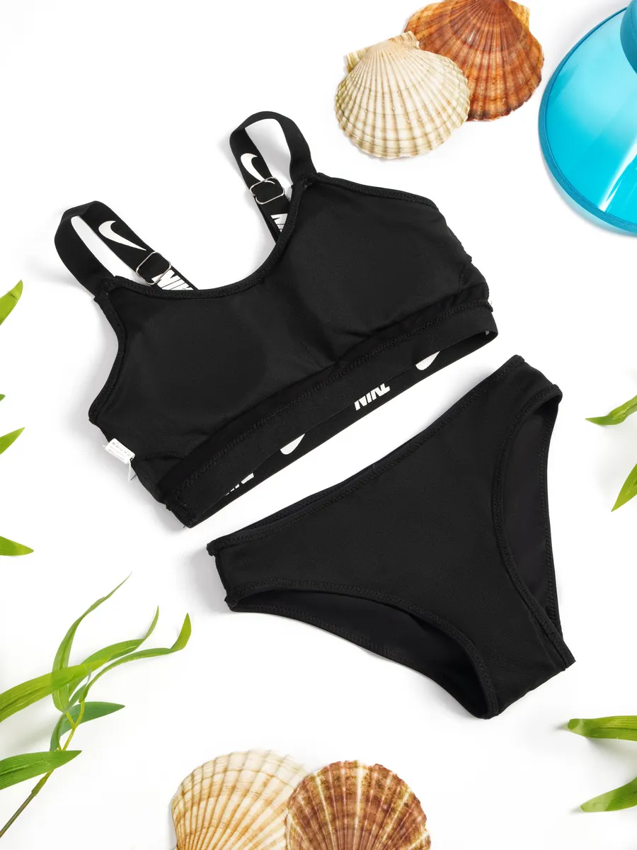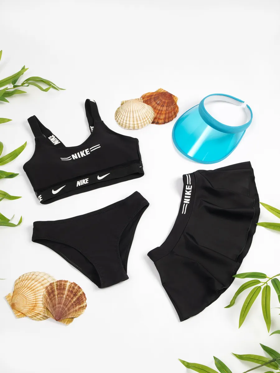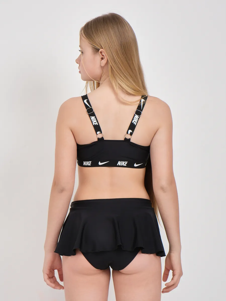 Представляем идеальный раздельный спортивный купальник, разработанный для девочек и подростка, ценящих комфорт и стиль. Этот детский купальный костюм выполнен в классическом черном цвете и украшен узнаваемым логотипом Nike, что делает его универсальным для любого времени года. Удобный топ без жестких чашечек обеспечивает полную свободу движений, а вместо привычных трусов в комплект входят оригинальные шорты. Их многослойный дизайн с легким воланом дополнен внутренними шортиками, создавая эффект юбки и предлагая решение "3 в 1". Идеальный для активного отдыха, занятий плавания в бассейне или на пляже, этот комплект станет незаменимым для купания на море.