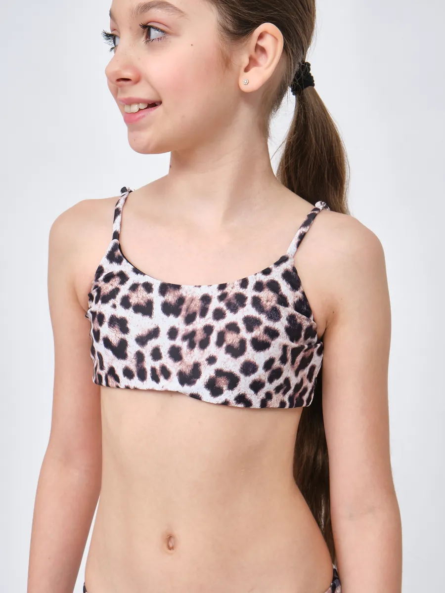 Удобный топ с тонкими регулируемыми бретелями хорошо держится и не сковывает движений — идеально для игр на пляже и плавания.