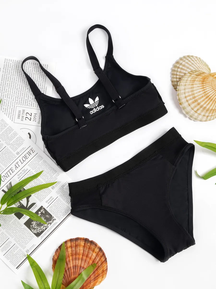 Раздельный спортивный купальник для девочек и подростков — идеальный вариант для плавания, бассейна, тренировок и активного отдыха. Модель выполнена из прочного эластичного материала с добавлением лайкры, устойчива к воздействию хлора и ультрафиолета. Удобный укороченный топ с регулируемыми бретелями и мягкой фиксирующей резинкой с логотипом обеспечивает надежную посадку и поддержку. Плавки с высокой посадкой комфортно сидят по фигуре, не сползают и не натирают при движении. Современный спортивный дизайн вдохновлён стилем