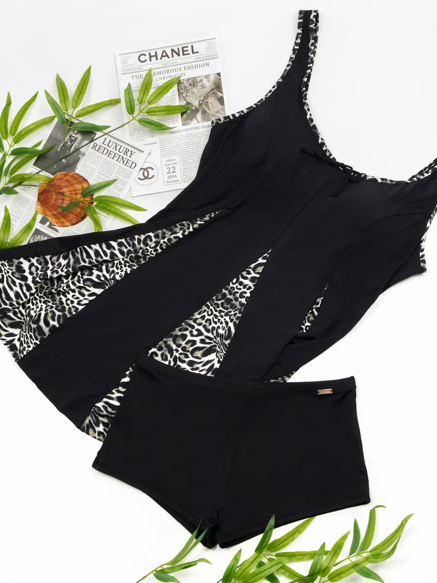 Погрузитесь в мир стиля и комфорта с женским купальником танкини больших размеров! Этот купальник танкини с шортами - идеальное сочетание удобства и элегантности для большой груди.