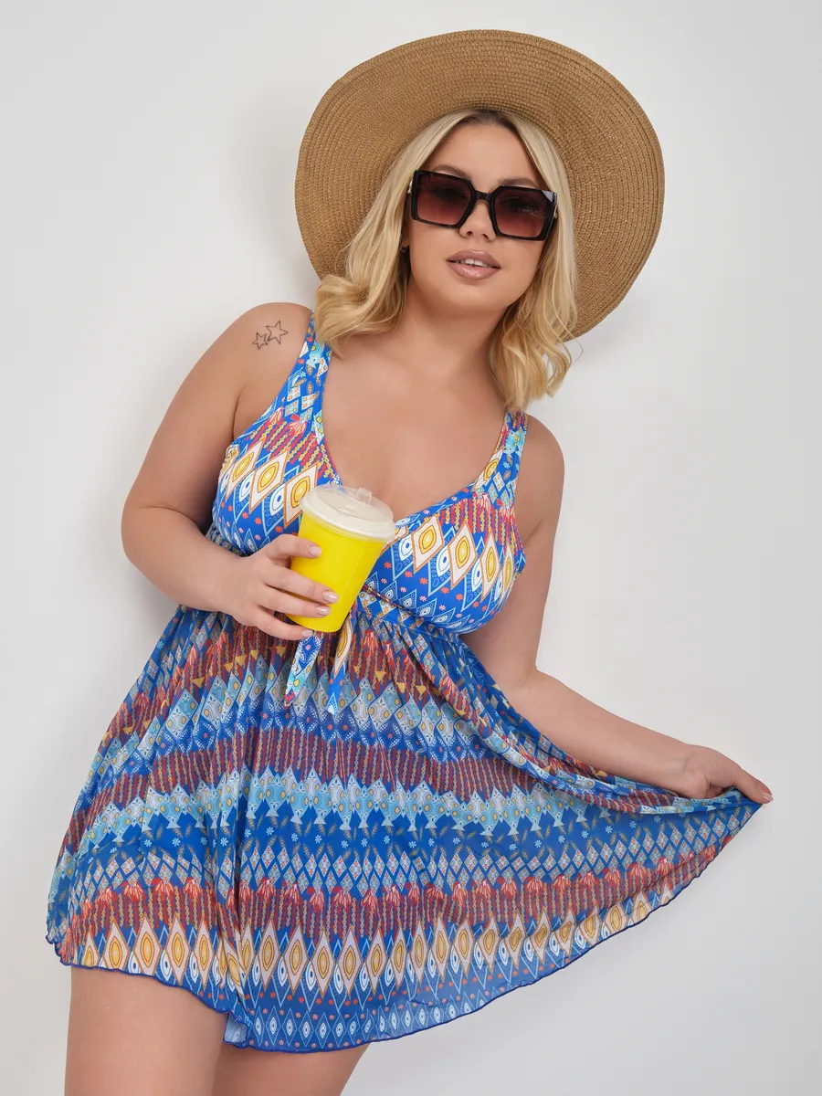 Этот купальник больших размеров с шортами позволит вам выглядеть стильно и чувствовать себя уверенно в любой ситуации — на пляже, у бассейна или в санатории.
