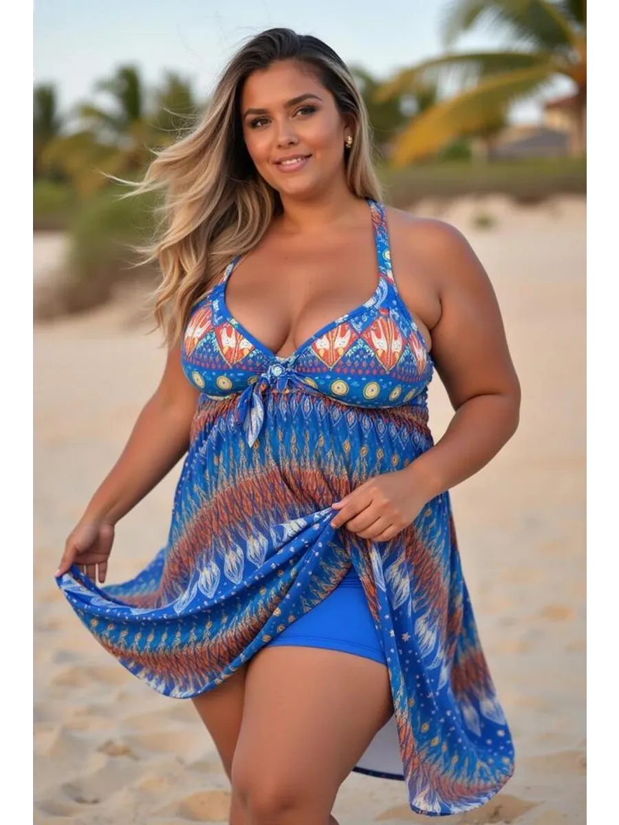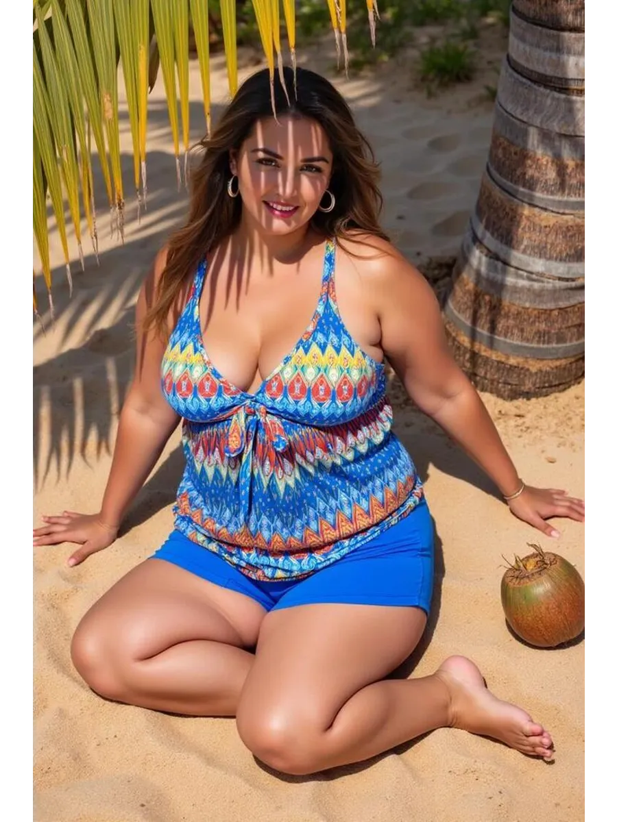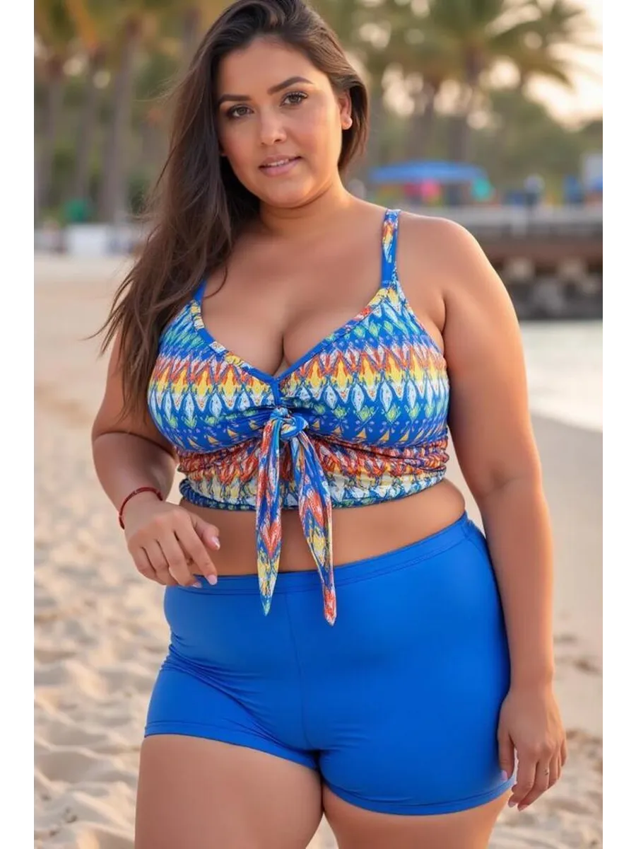 Женский купальник танкини больших размеров с шортами — идеальное сочетание стиля, комфорта и уверенности! Модель создана для женщин plus size, подходит для большой груди, прекрасно сидит на пышных формах и скрывает возможные недостатки.