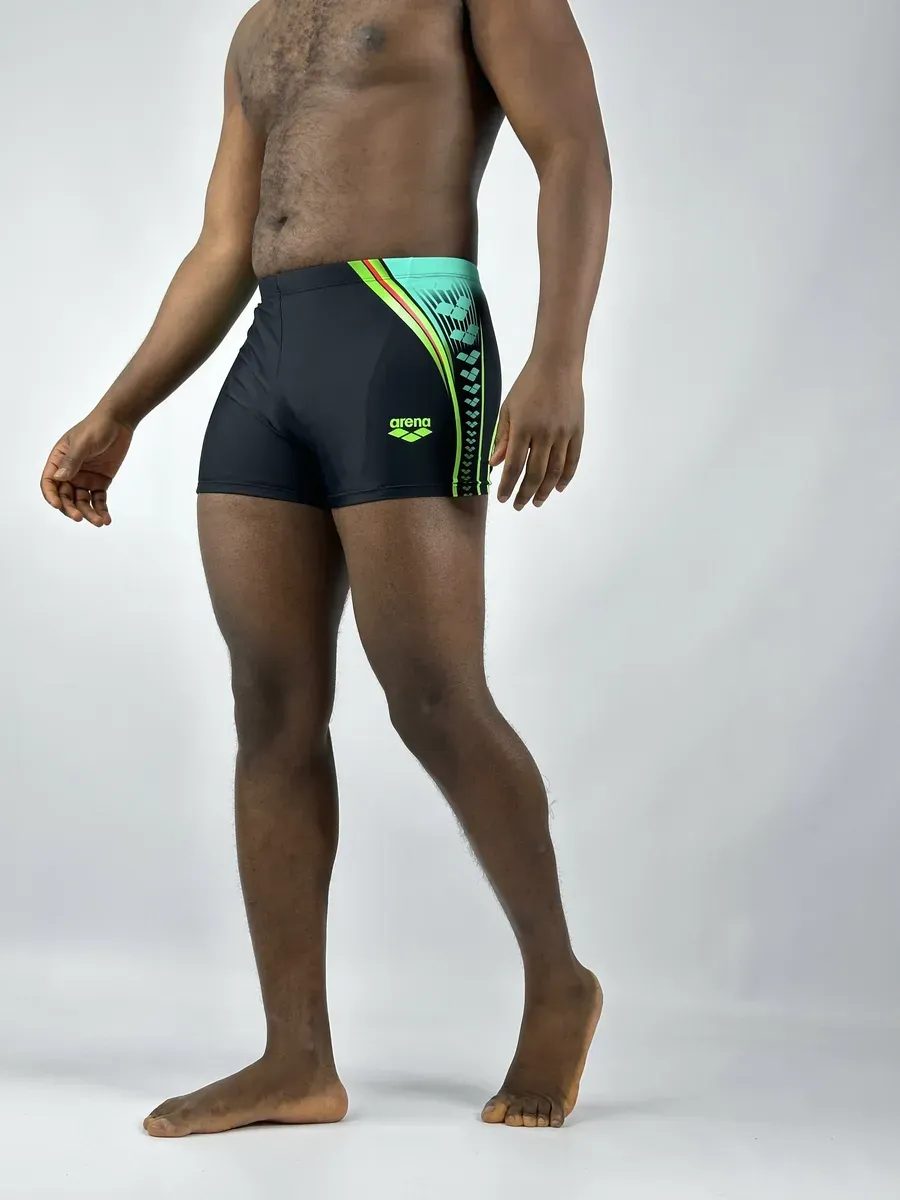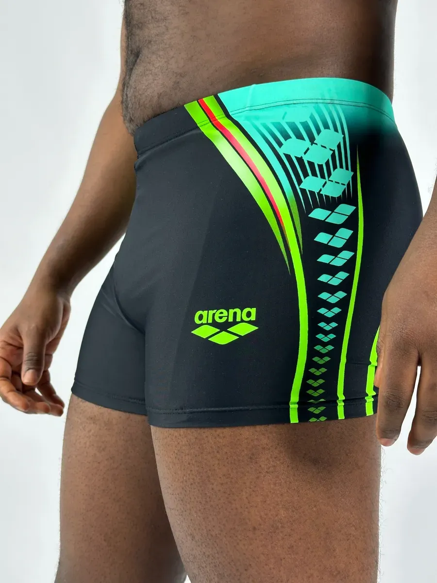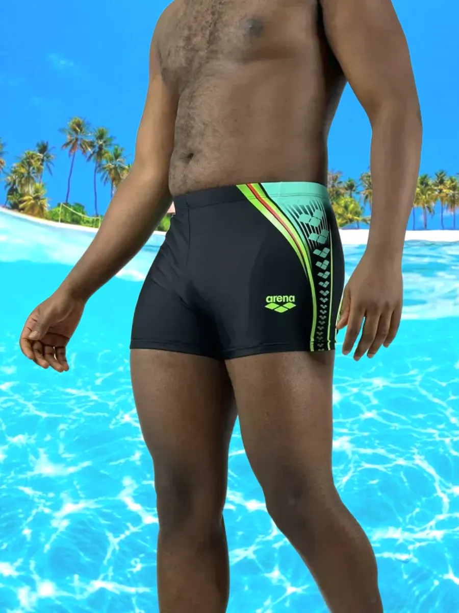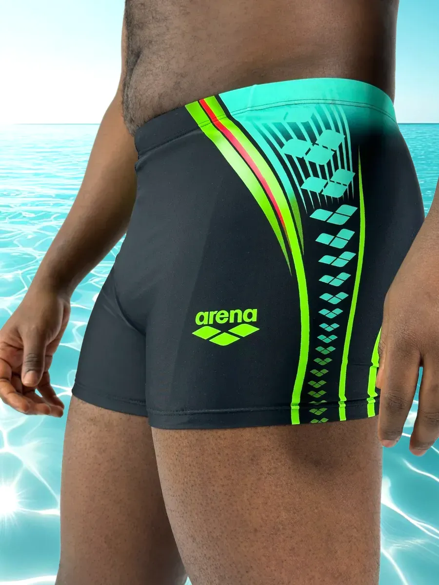 Представляем мужские плавки-боксеры arena – идеальный выбор для всех, кто ценит комфорт и стиль. Эти купальные трусы выполнены в глубоком синем цвете, эффектно отличающемся от классических черных моделей, и украшены ярким принтом сбоку. Стильный принт с элементами логотипа Арена добавляет динамичности, превращая их из однотонных шорт в спортивные плавательные боксеры.