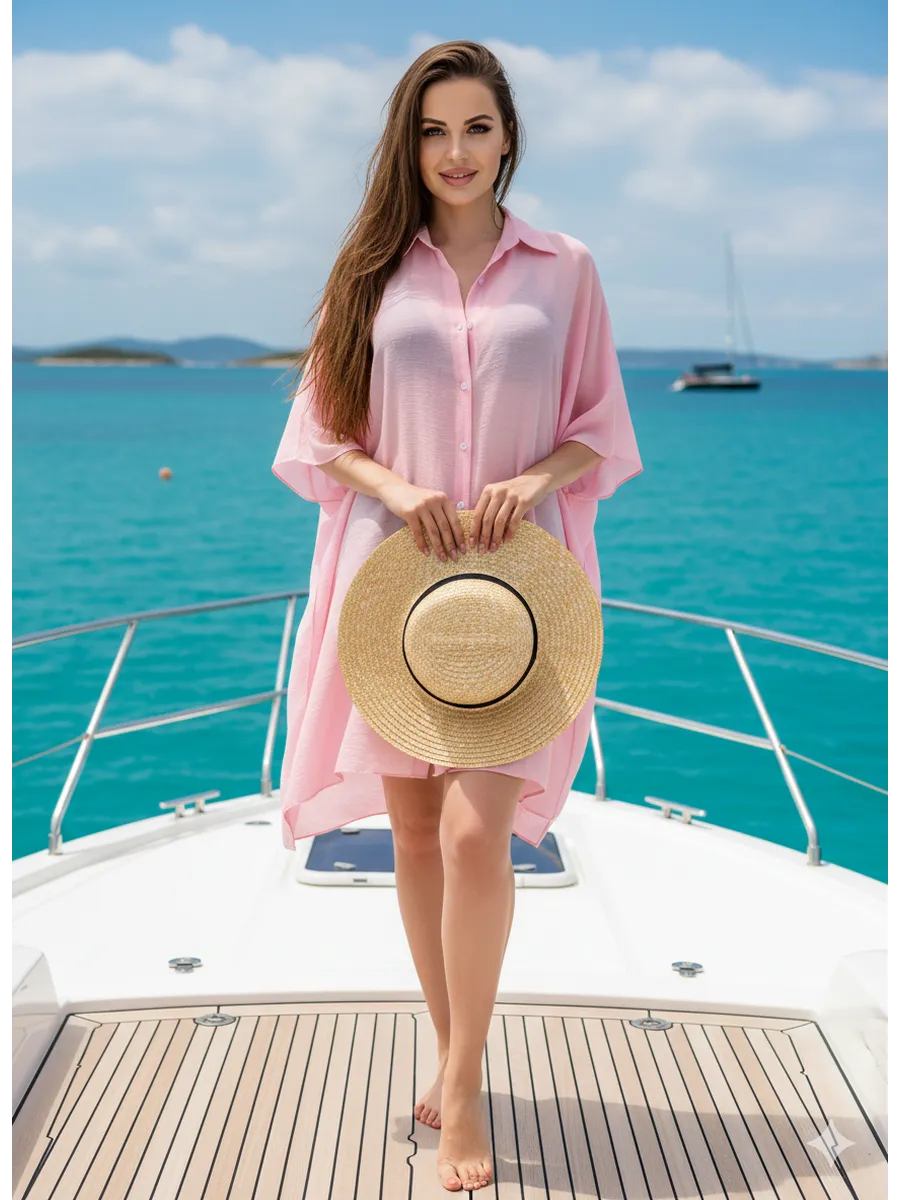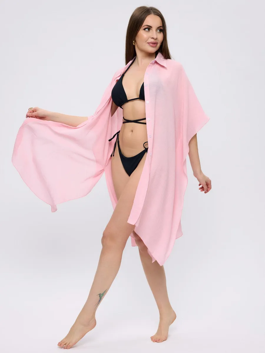 Идеальная пара к вашему купальнику – удлиненная пляжная туника в свободном крое оверсайз. Это стильная и практичная накидка, которая подчеркнет ваш образ и обеспечит комфорт у воды, в баре отеля или на прогулке вдоль берега.