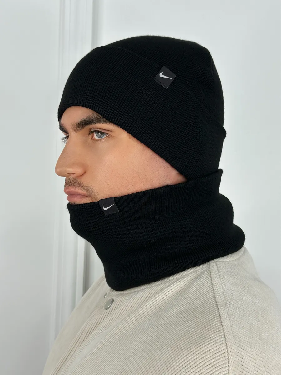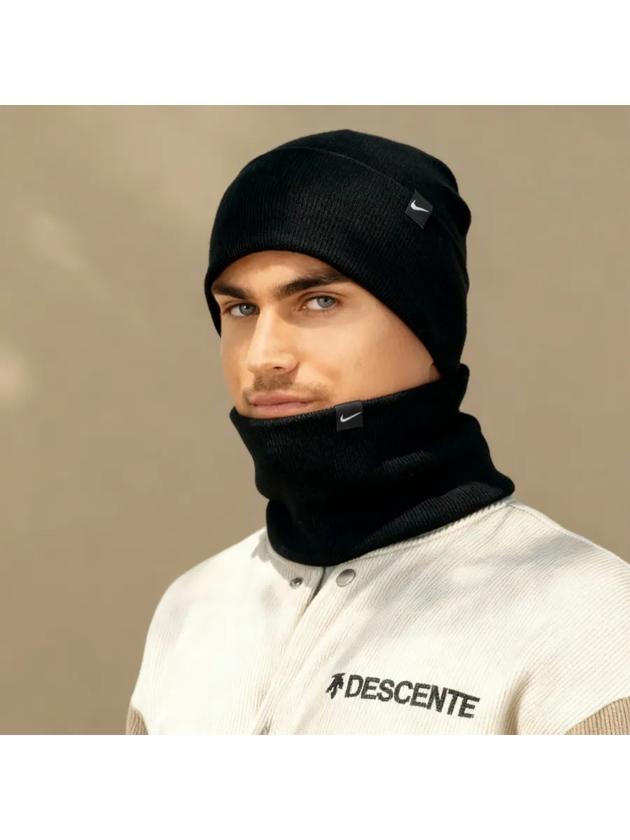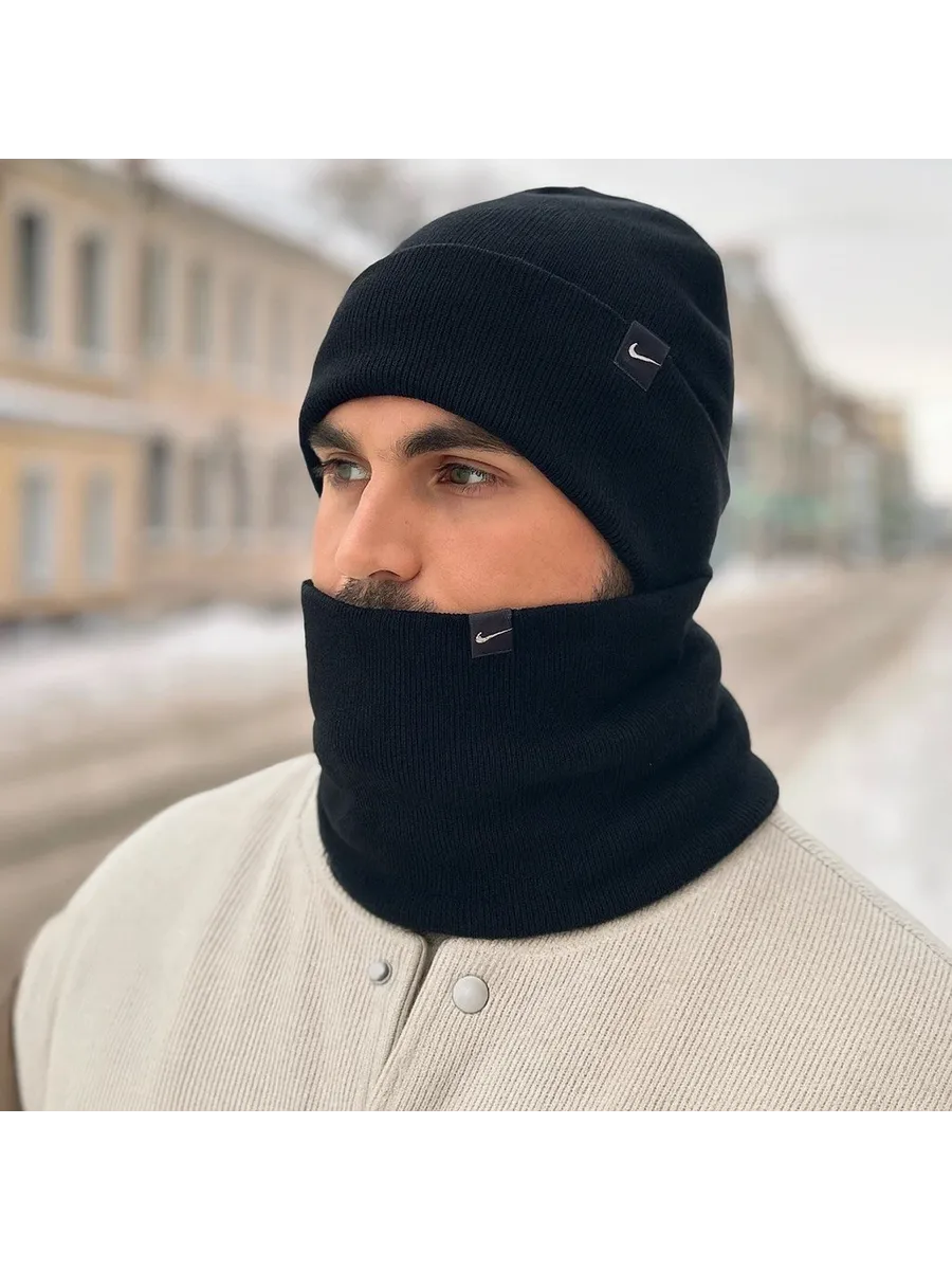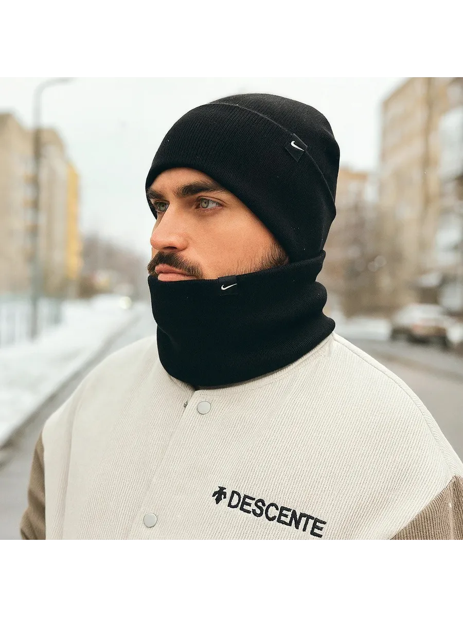 Стильный зимний комплект Nike тёплая вязаная шапка и универсальный снуд-бафф, созданные для комфорта в холодную погоду.