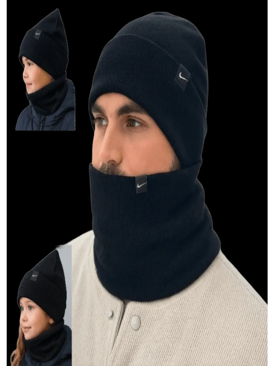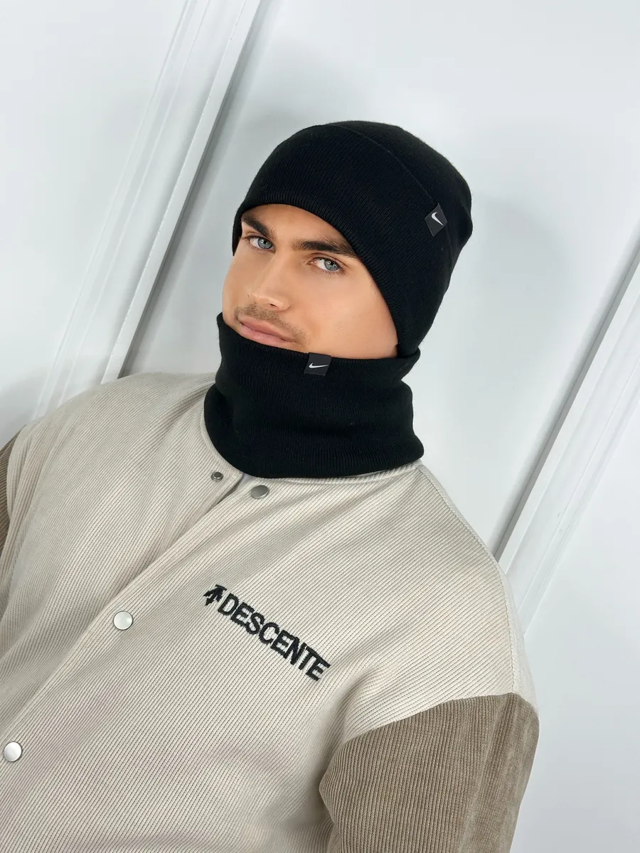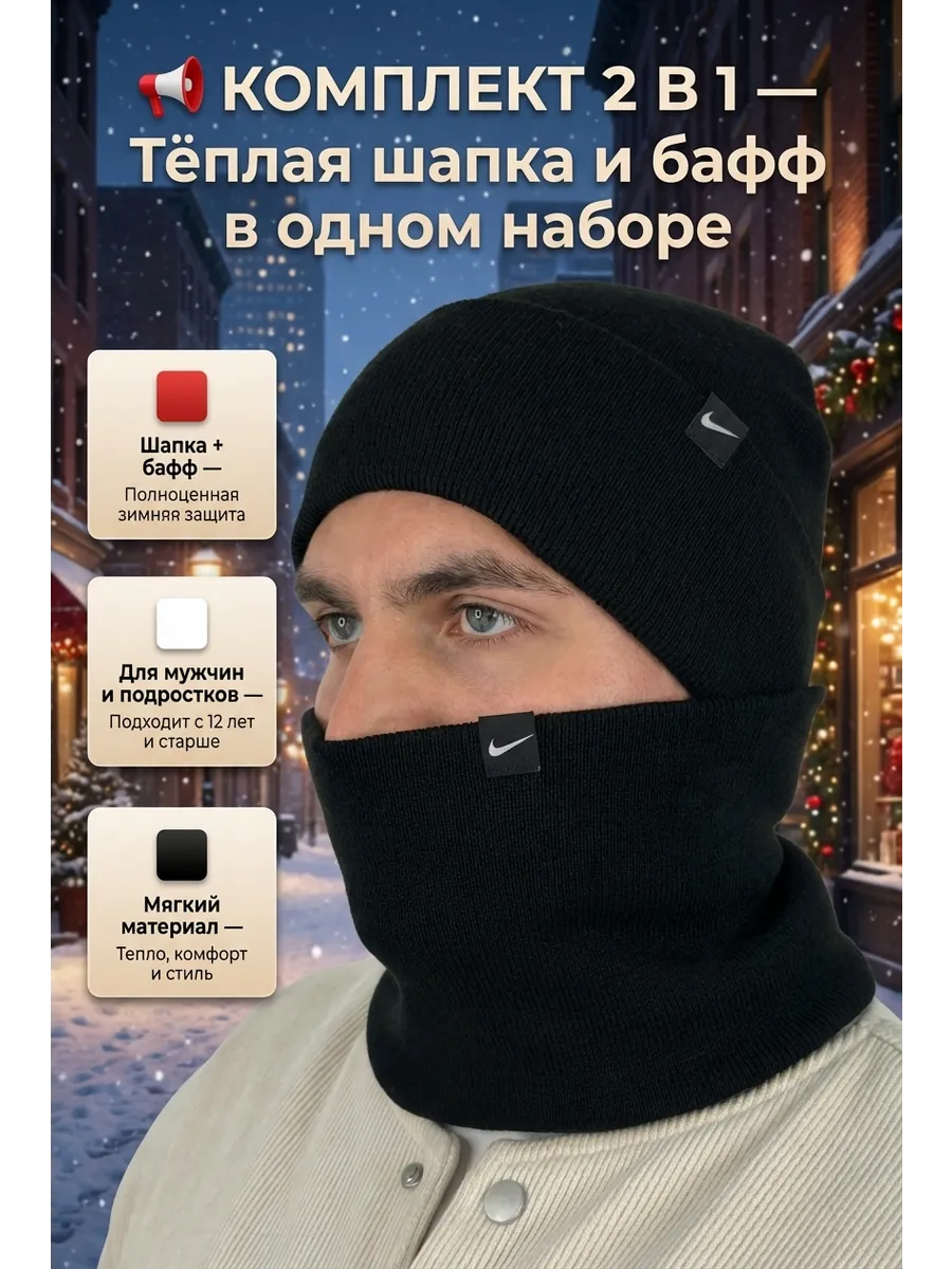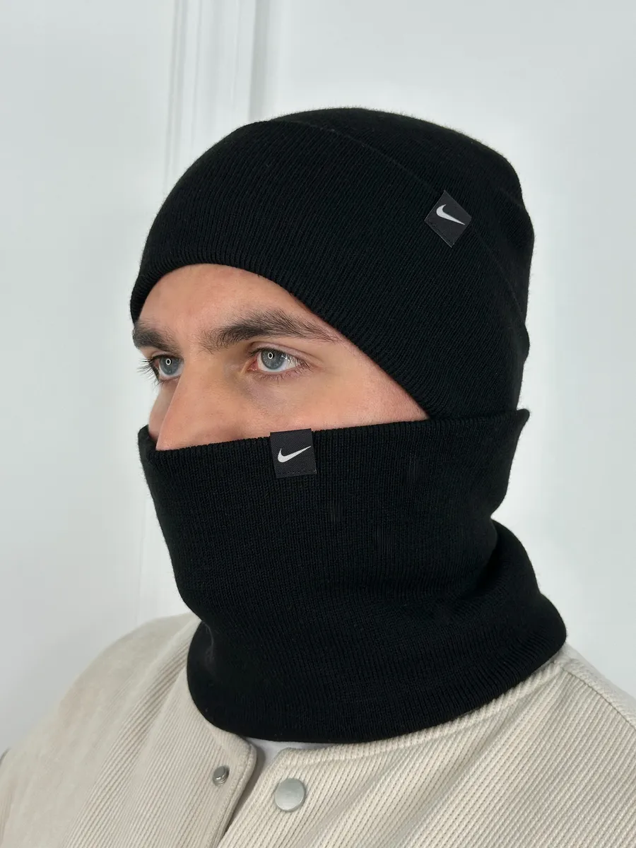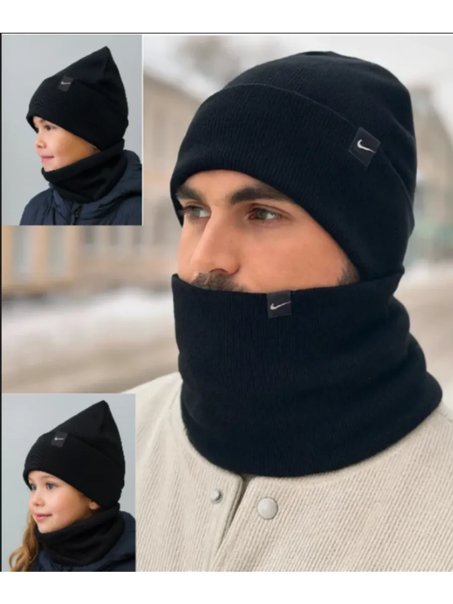Стильный зимний комплект Nike тёплая вязаная шапка и универсальный снуд-бафф, созданные для комфорта в холодную погоду.