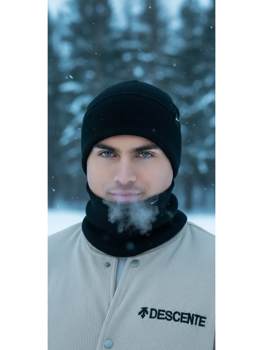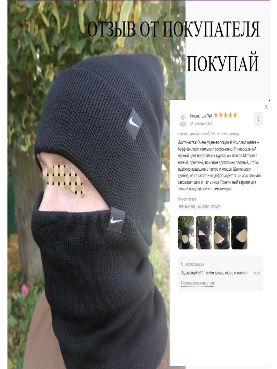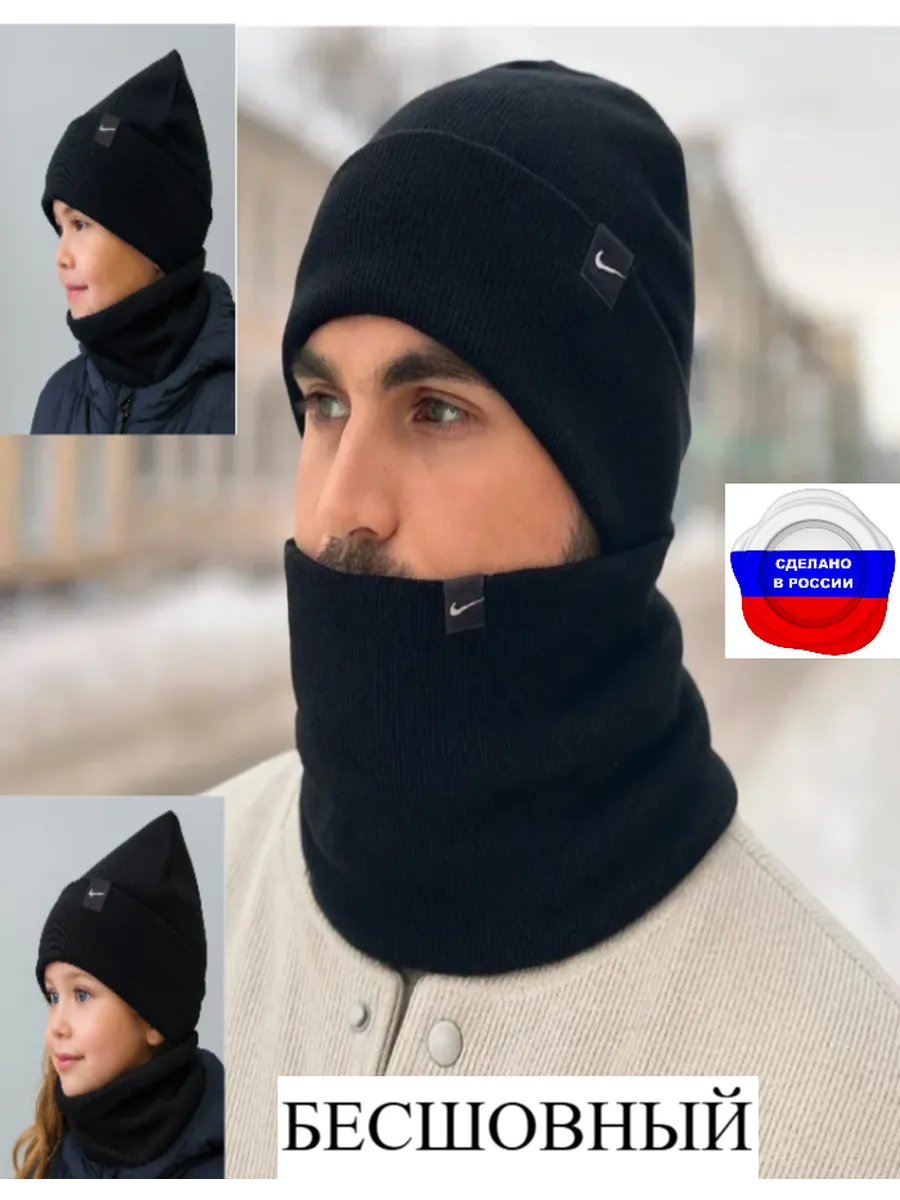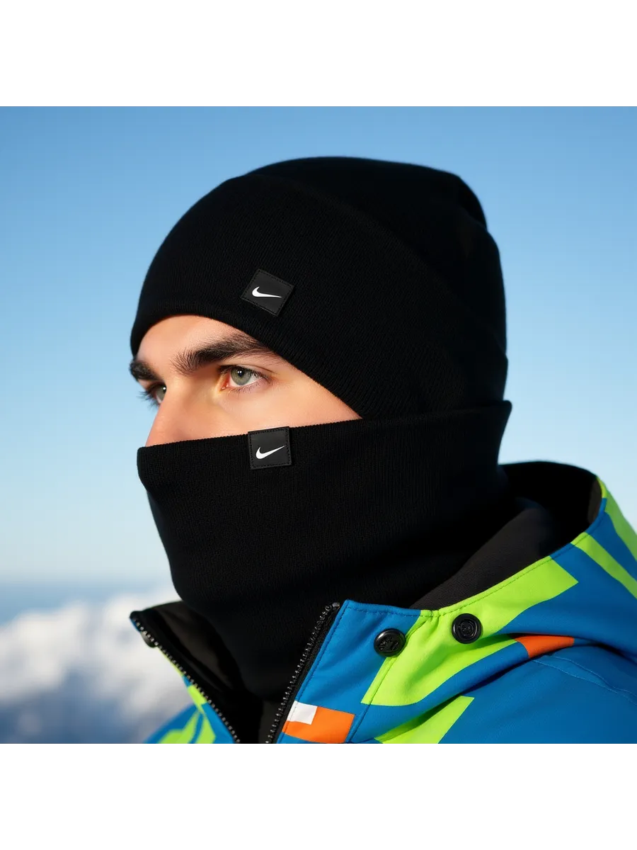 Стильный зимний комплект Nike тёплая вязаная шапка и универсальный снуд-бафф, созданные для комфорта в холодную погоду.